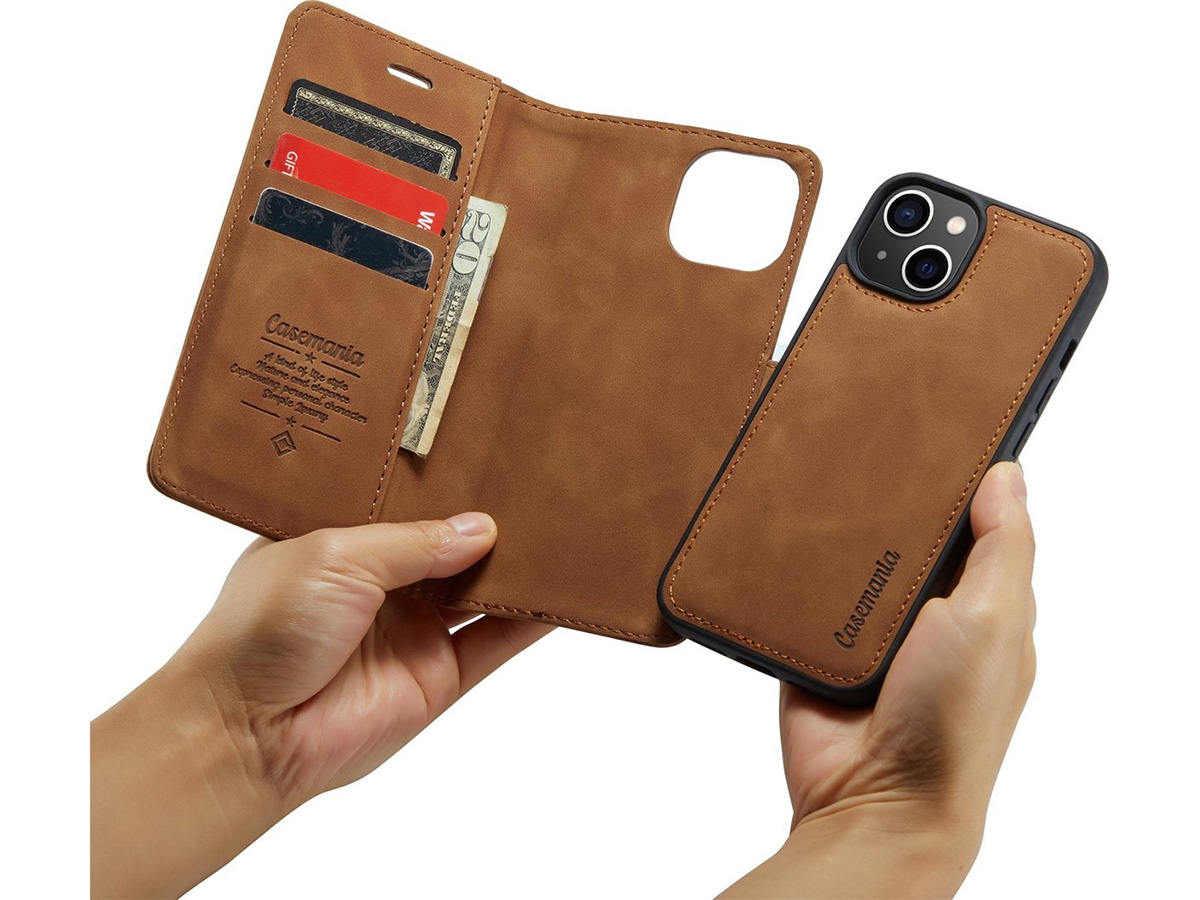 CaseMe 2-in-1 Magnetic Bookcase Magnetic Uitneembaar Hoesje iPhone 14 Cognac Bruin