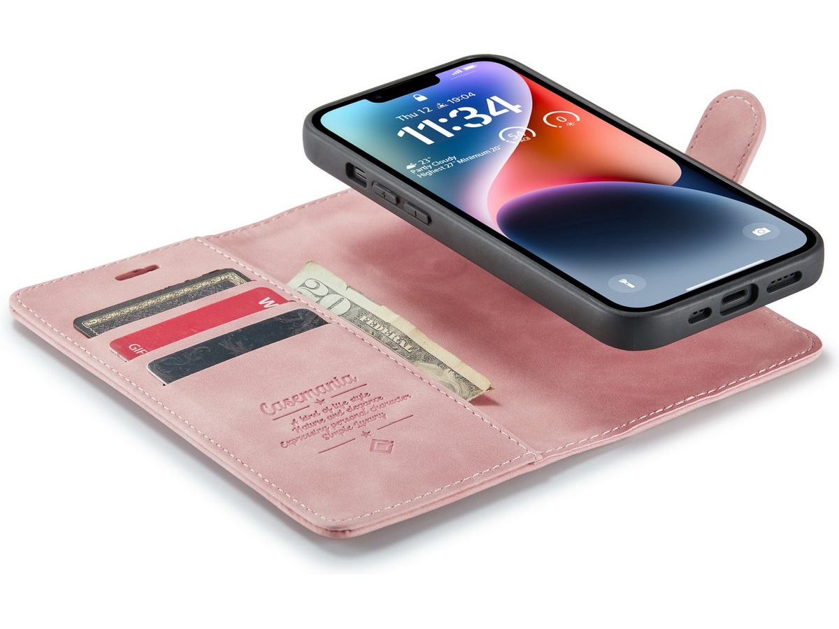 CaseMe 2-in-1 Magnetic Bookcase Magnetisch Uitneembaar Hoesje iPhone 13 Mini Roze