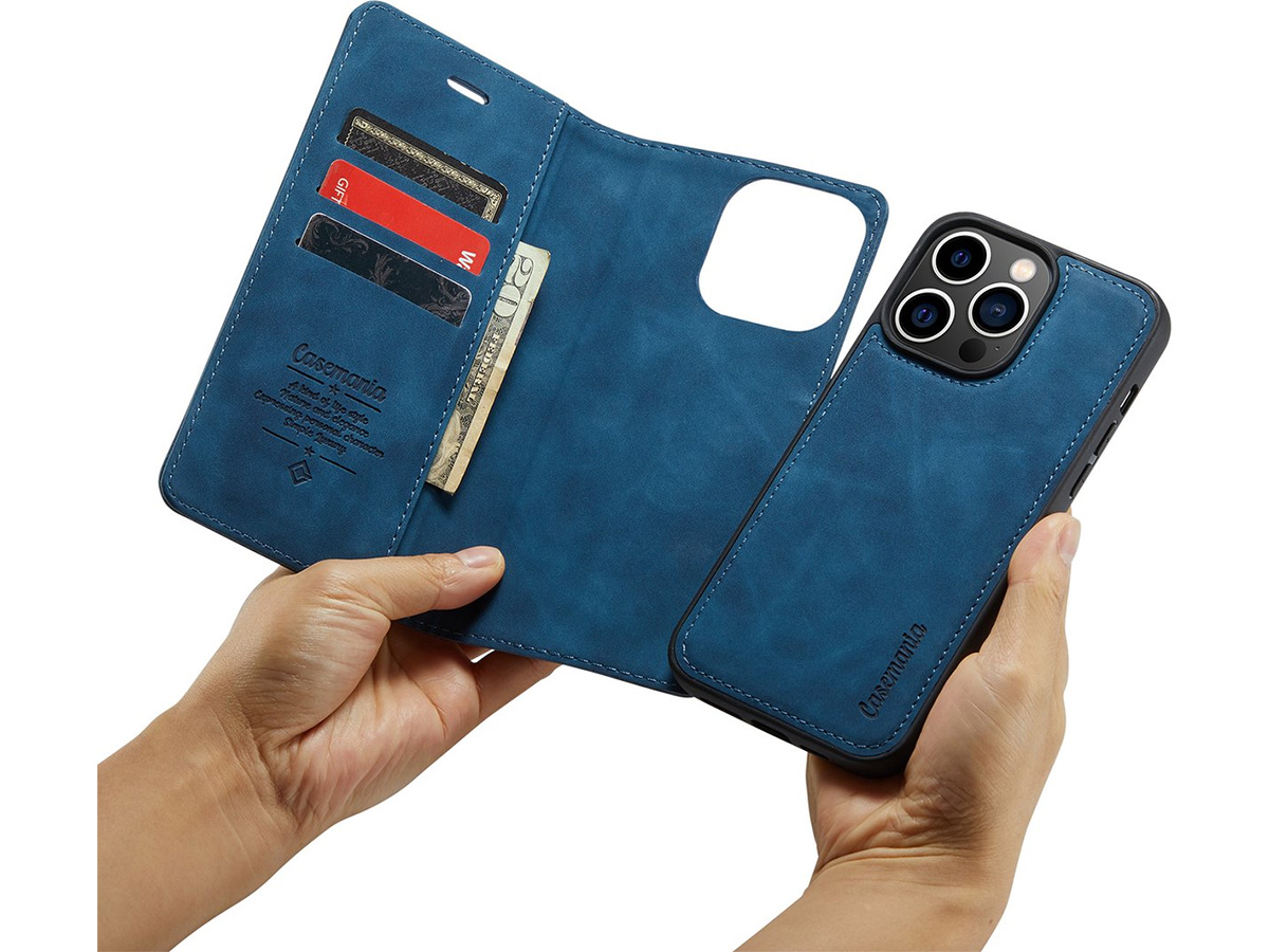 CaseMe 2-in-1 Magnetic Bookcase Magnetisch Uitneembaar Hoesje iPhone 14 Pro Max Donkerblauw