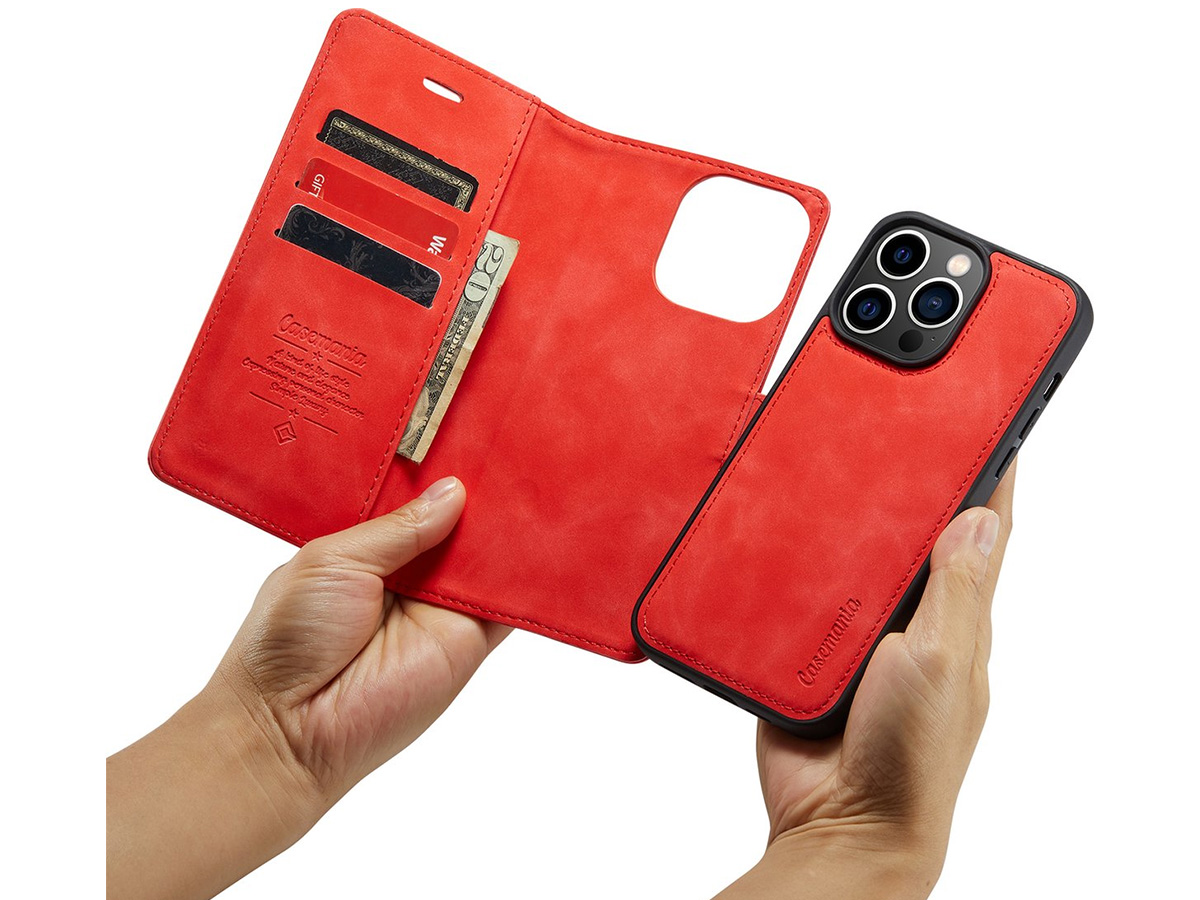 CaseMe 2-in-1 Magnetic Bookcase Magnetisch Uitneembaar Hoesje iPhone 14 Pro Max Rood