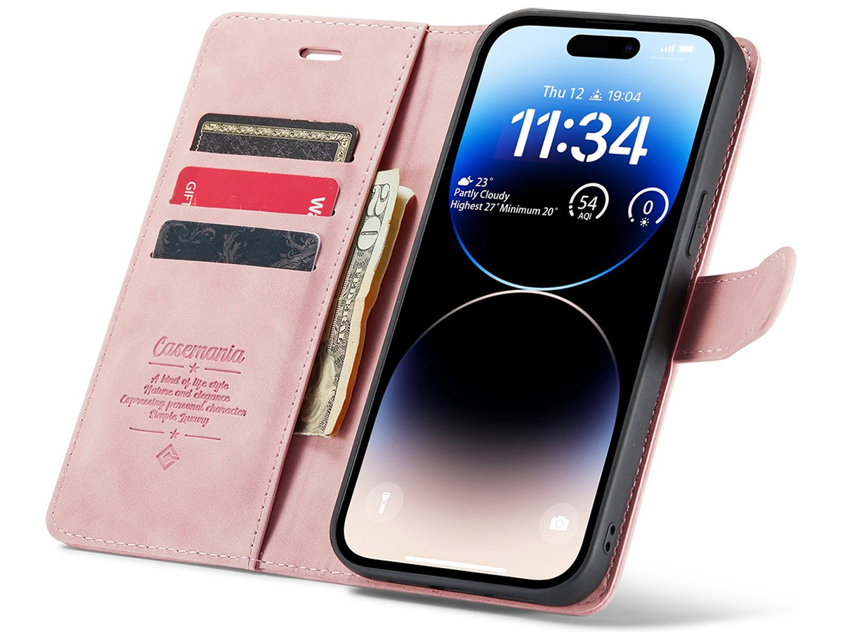 CaseMe 2-in-1 Magnetic Bookcase Uitneembaar Hoesje iPhone 15 Pro Roze