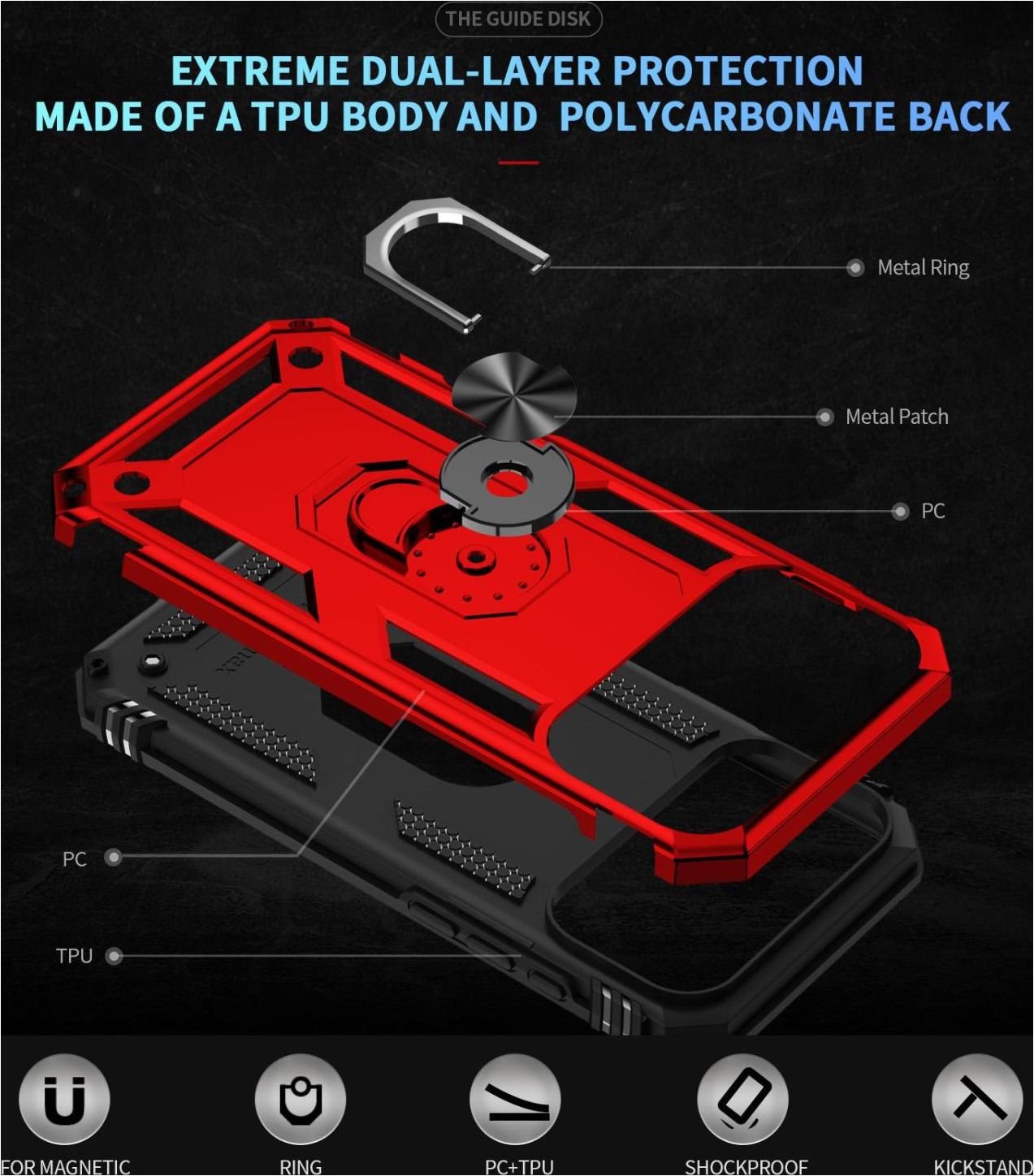 De naam zegt het al: dit hoesje is een harnas voor uw smartphone. De Guardify Armor Ring case is vervaardigd uit hoogwaardig, stevig kunststof. Dit harde materiaal vormt een solide schild tegen krassen, deuken en andere beschadigingen van buitenaf. De constructie is speciaal ontworpen om de kwetsbare achterkant en zijkanten van uw toestel optimaal te beschermen, zelfs onder ruige omstandigheden.