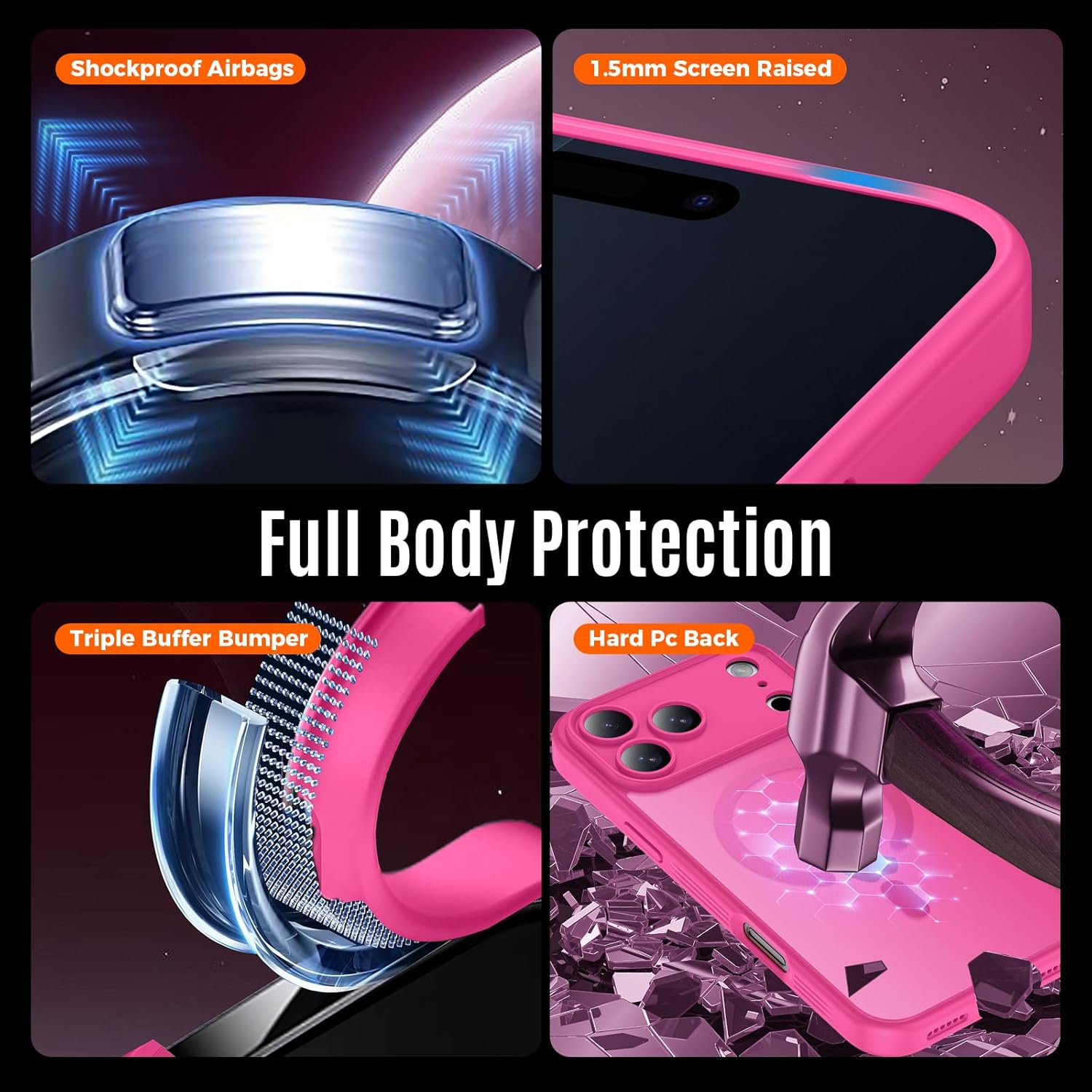 Deze case is specifiek ontworpen om de kwetsbare onderdelen van de iPhone 17 Pro Max te beveiligen. Een belangrijk kenmerk is de geïntegreerde camera-bescherming, die de lenzen behoedt voor krassen en vuil wanneer u de telefoon neerlegt. De schokabsorberende TPU-randen en verstevigde hoeken vangen de impact op bij een val, terwijl de opstaande randen aan de voorzijde voorkomen dat het scherm direct in contact komt met harde oppervlakken.