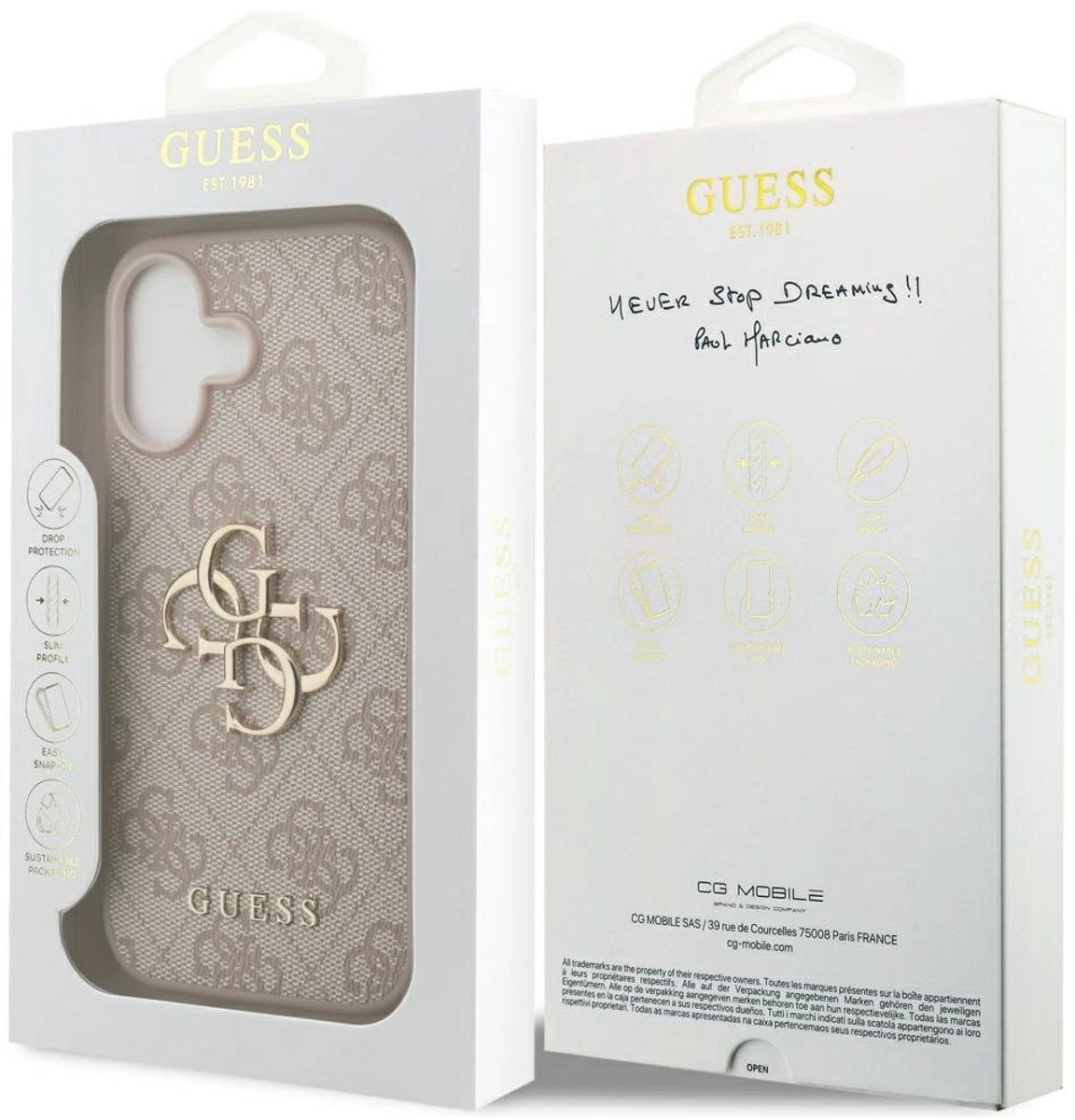 Met een hoesje van Guess tovert u uw smartphone om tot een echt mode-item. De achterzijde is voorzien van de klassieke monogram-print die het merk wereldberoemd heeft gemaakt. Het ontwerp wordt afgemaakt met een opvallend, goudkleurig metalen Guess-logo in het midden. Dit geeft de iPhone 17 case een chique en exclusieve uitstraling die perfect past bij uw andere accessoires.