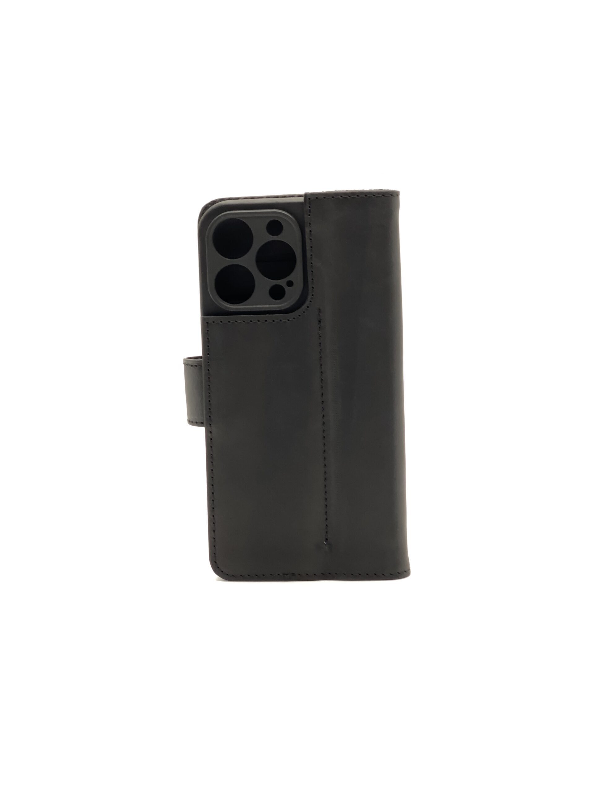 Omnium Echt Lederen Bookcase iPhone 14 Pro Max Zwart